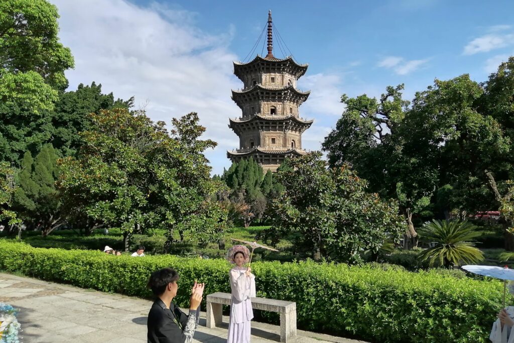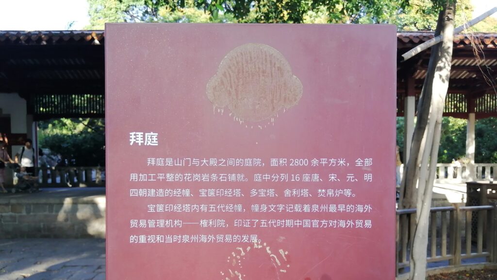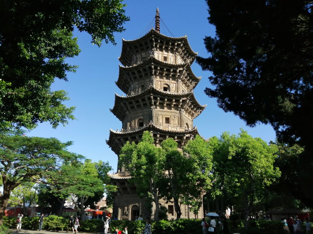 開元寺 到着した時間は閉門まで余裕がなかったので、鎮国塔(東塔)、大雄宝殿、拝庭にある宋代二塔をサッと見学。仁寿塔(西塔)の見学は翌日となる。寺の説明は百度百科より引用する。