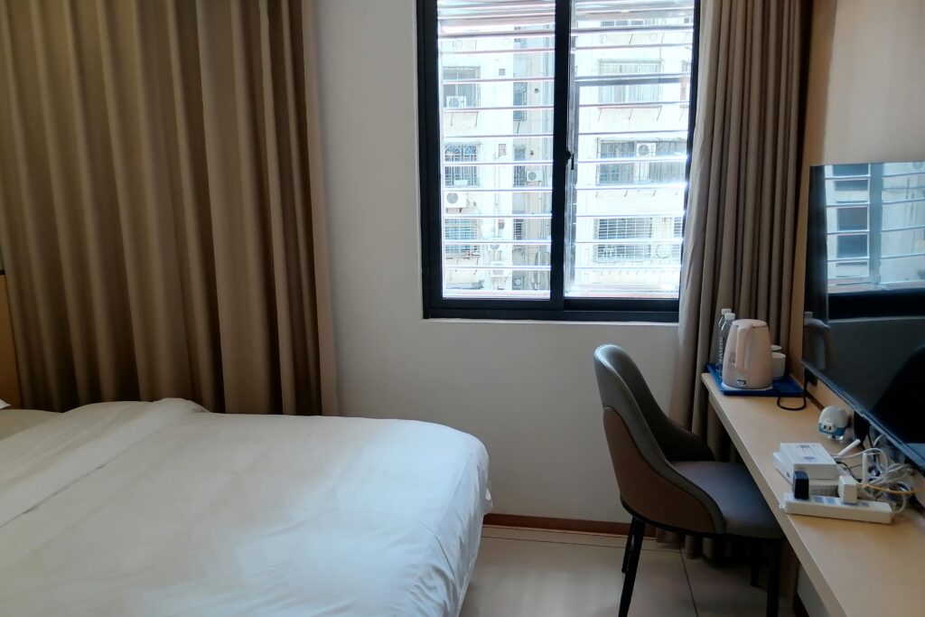 午前10時、福州駅から高速鉄道に乗り、11時過ぎに泉州駅到着。駅から市バスで古城エリア近くにあるホテルへ行きチェックイン、少し休息する。比較的新しいホテルで、室内設備はすべてキレイで気分が良い。ただ利用する部屋は狭く、窓から見える景色も残念・・・。