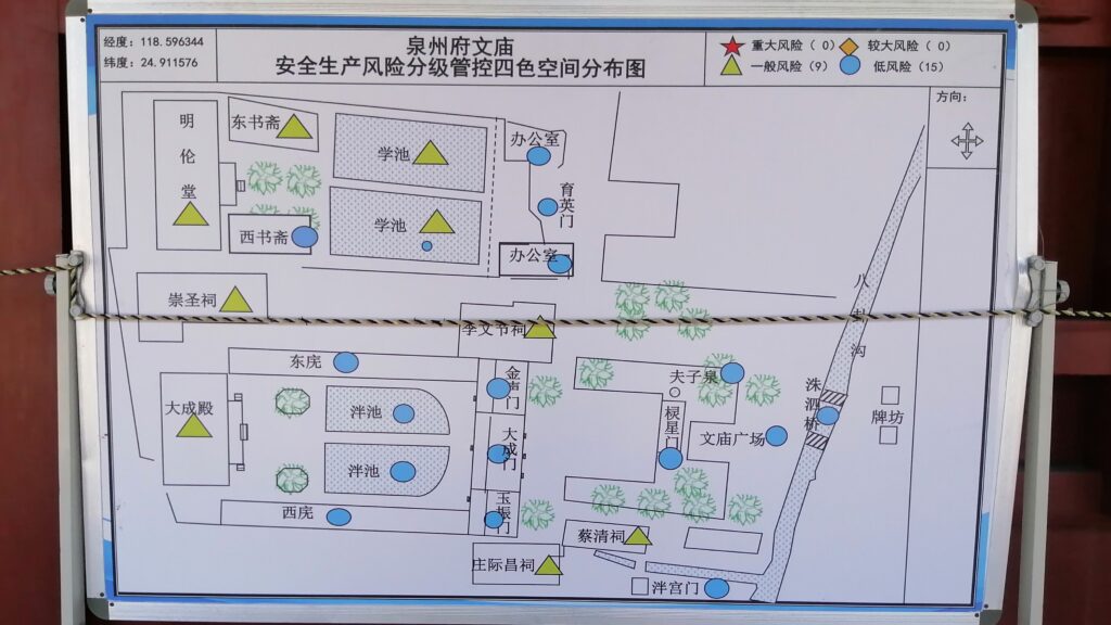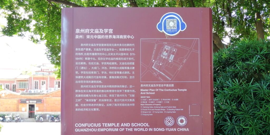 泉州府文廟 清浄寺から西へ約10分に泉州の孔子廟がある。中国内を旅していると各地域に孔子廟がある。ただそれぞれ廟は歴史や規模が異なり、比べながら見学するのは面白い。現地の説明によると、泉州の廟は北宋太平大興国年間(976-984)に他地域から移設されたとのこと。大成殿や泮池を見ても比較的大規模な孔子廟であると感じた。その他説明は百度百科より引用する。