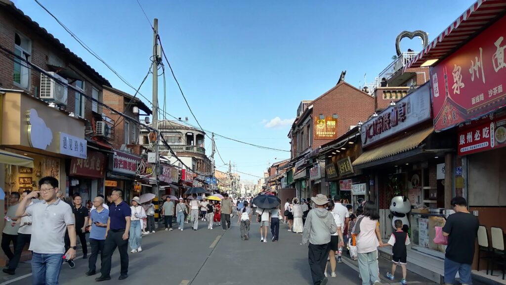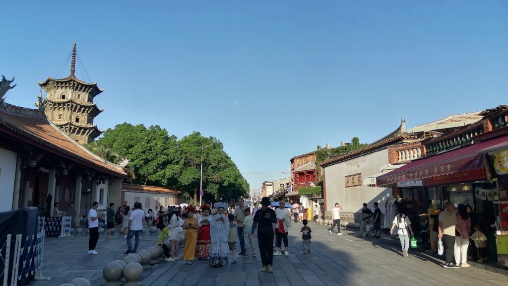 西街 鐘楼の交差点から西方に延びている道が「西街」。唐代から存在する古い通りで、観光客向けの飲食店やお土産屋などが軒を連ねている。人気のエリアで多くの観光客で賑わっている。ここを通って泉州開元寺へ向かう。