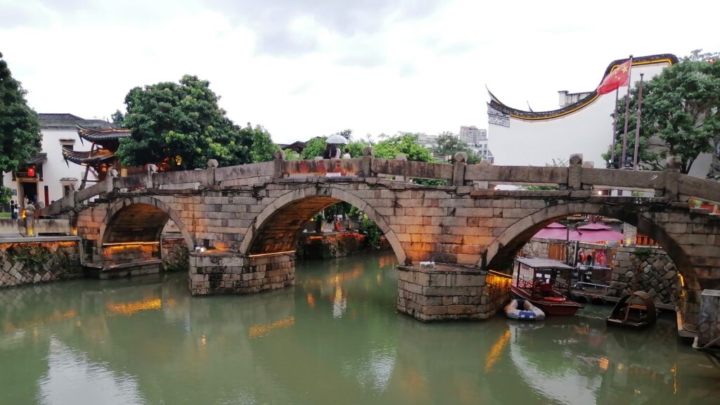 上下杭歴史文化街区 この地域は古くより貿易港として発展し、明清時代は大いに栄えたという。現在は民国期以降の建物が目立つが、清代の石橋や建物も残り、ただ歩いているだけでも古い街の雰囲気が楽しめる。前日に訪れた「三坊七巷」とは違い、ここでは水路とそれに融け込んだ街の風情が楽しめる。貿易港として栄えた当時の面影である。当地区の説明は百度百科より引用する。