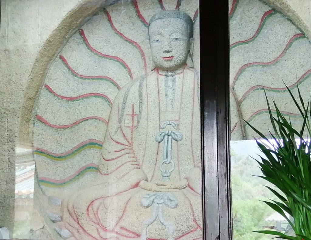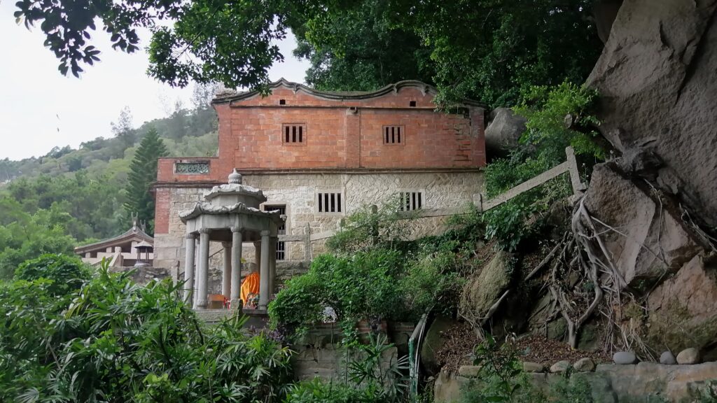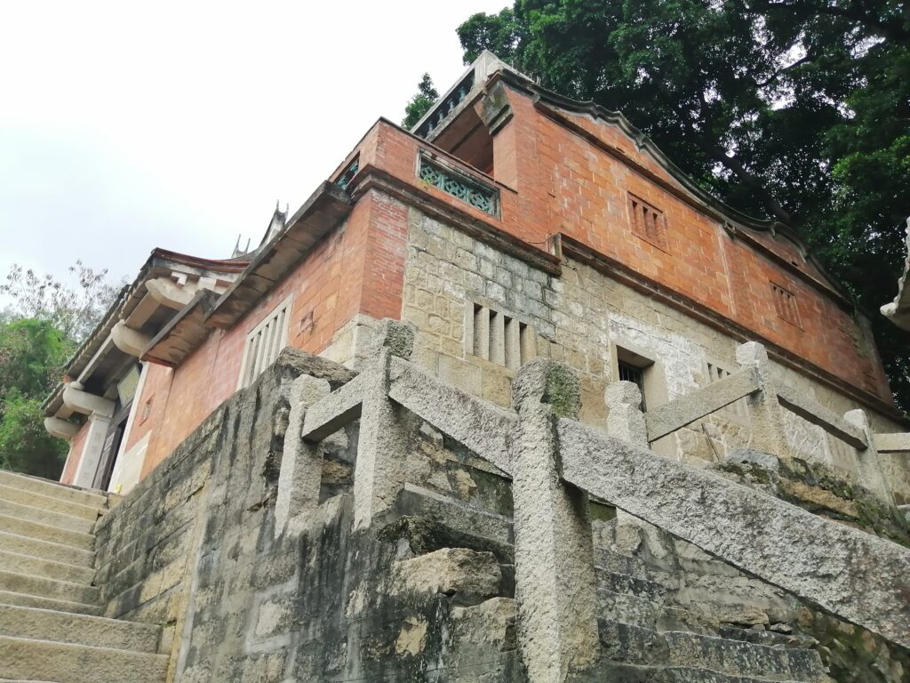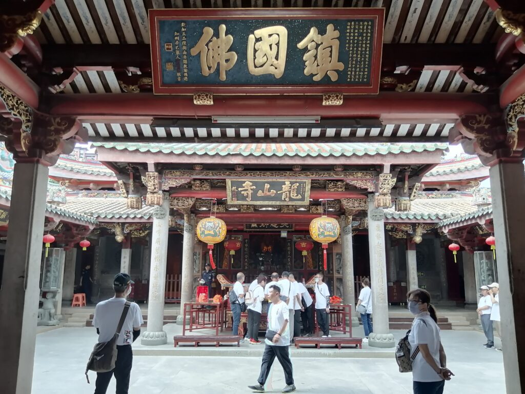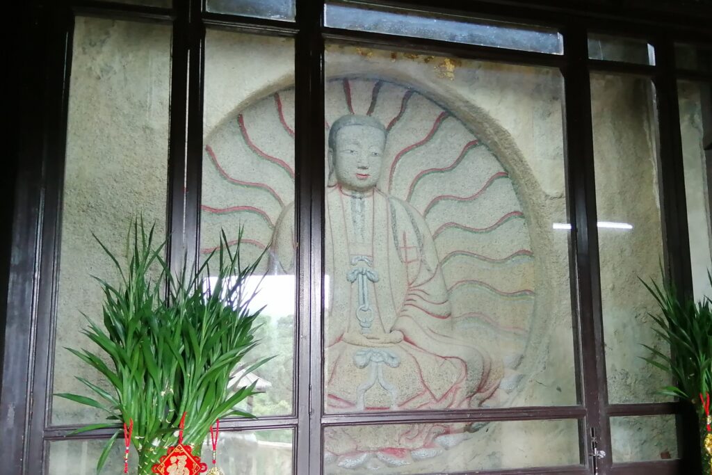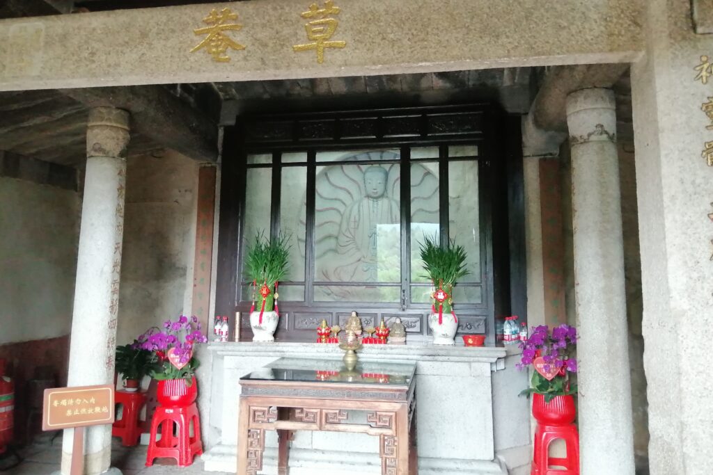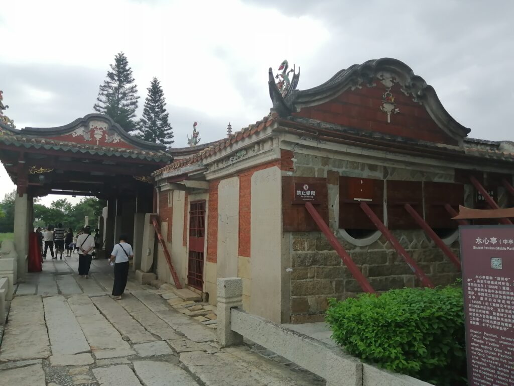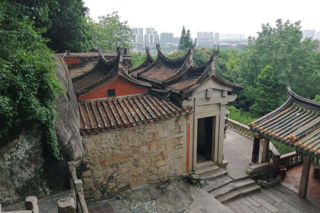 千手石 現地の説明に、この建物は閔南の伝統建築様式だとある。赤い瓦、赤い壁、反り上がる屋根・・・。そう言えば、弥陀寺の建物もに似た外観の建物であったと思い起こす。さて、これで清源山の観光も終了。市バスに乗って市街地へ戻る。