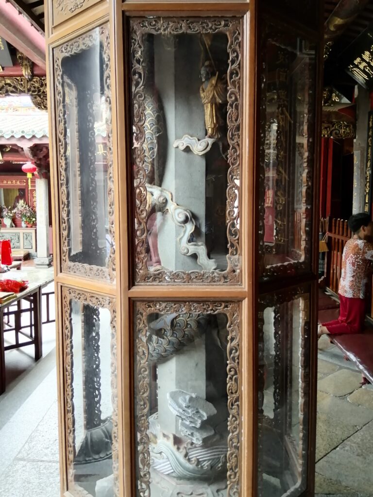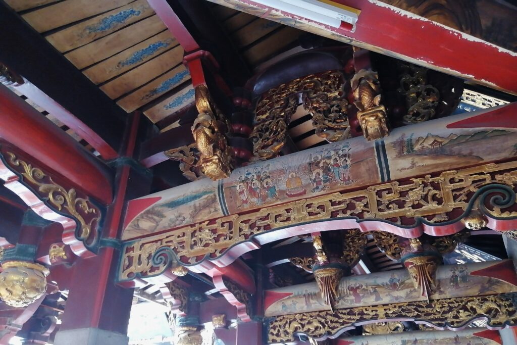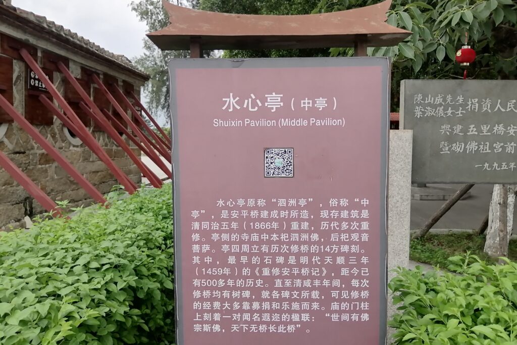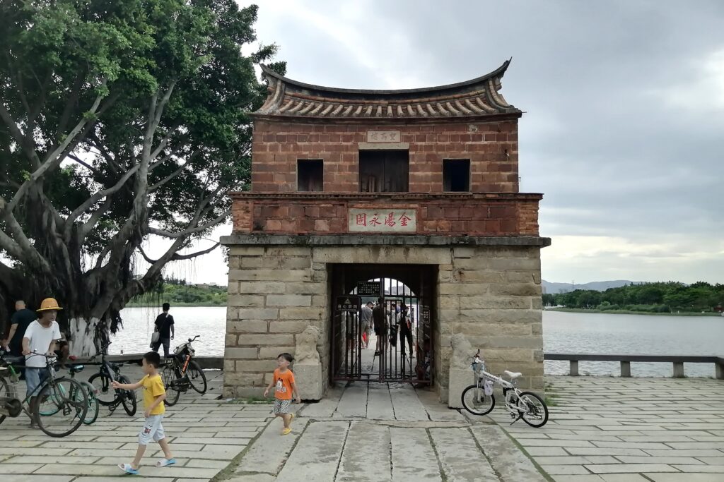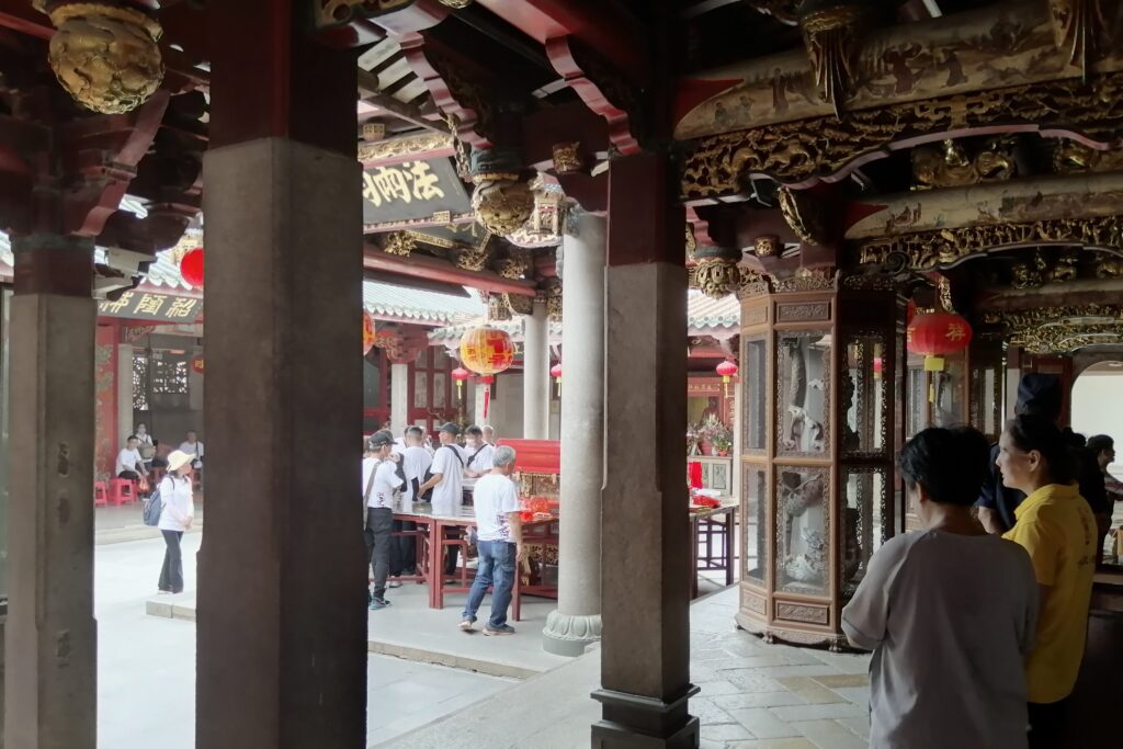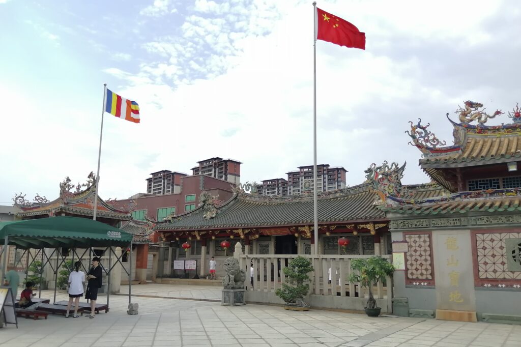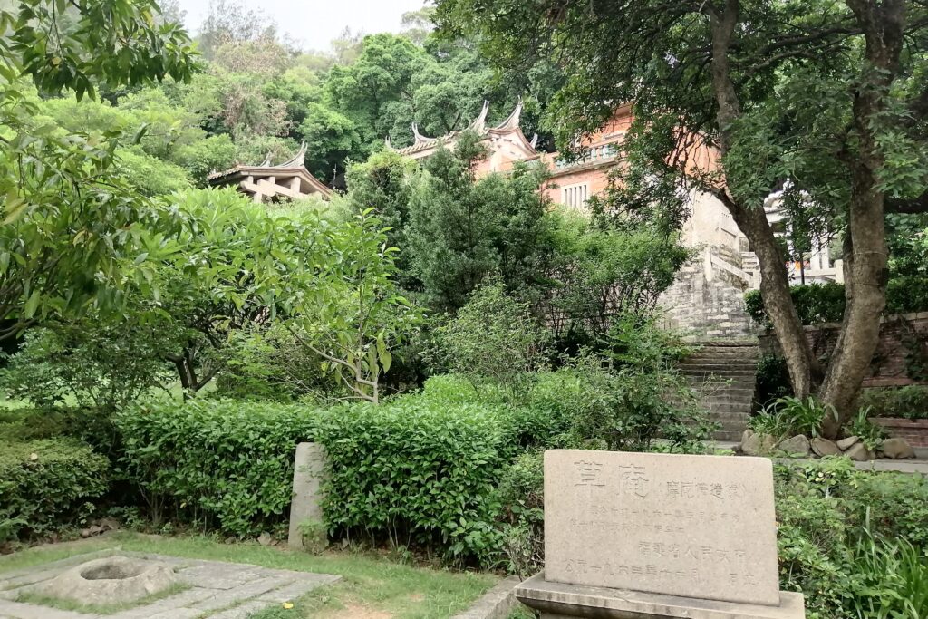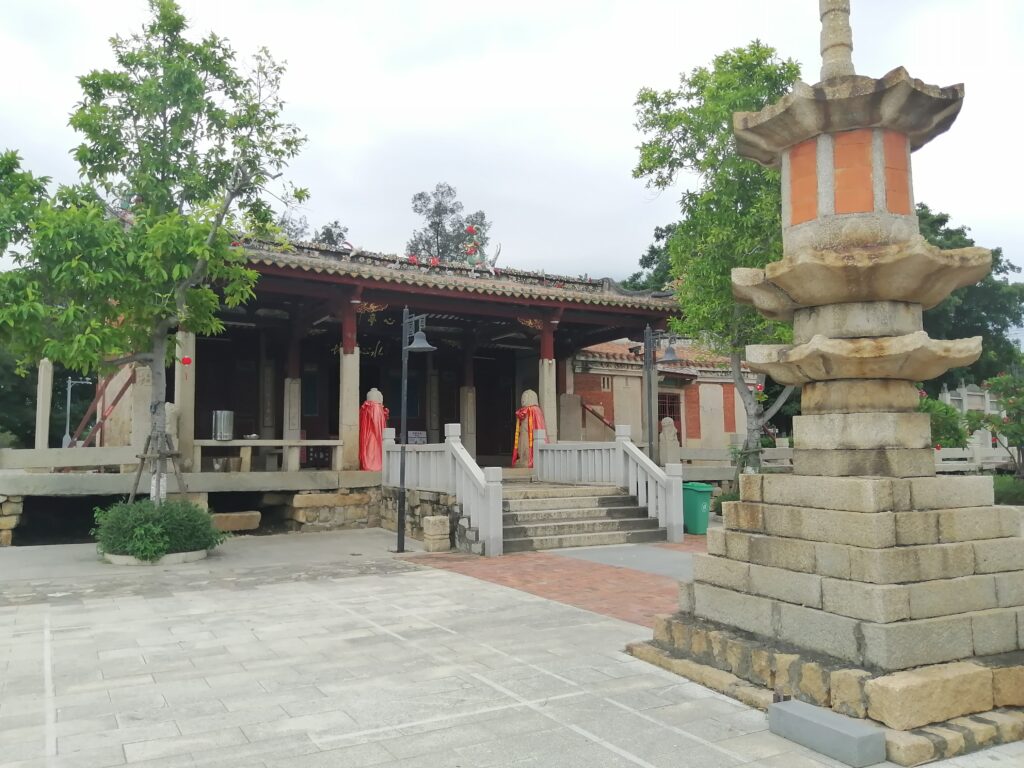 千手石 現地の説明に、この建物は閔南の伝統建築様式だとある。赤い瓦、赤い壁、反り上がる屋根・・・。そう言えば、弥陀寺の建物もに似た外観の建物であったと思い起こす。さて、これで清源山の観光も終了。市バスに乗って市街地へ戻る。