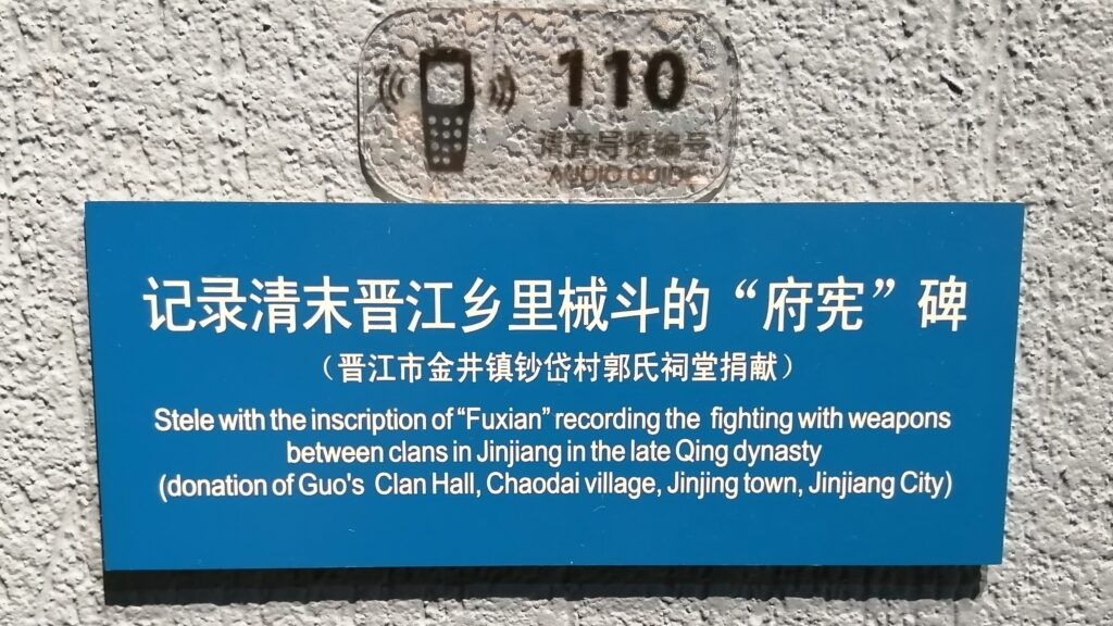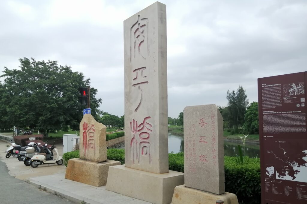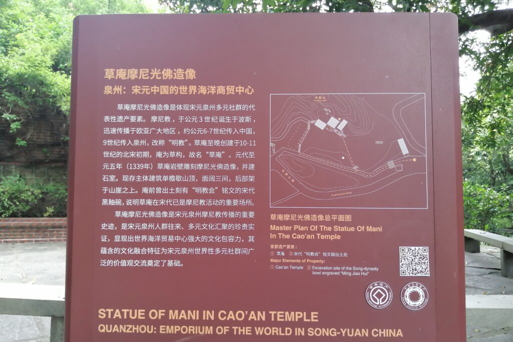 第一山石碑 現地の説明によると、この文は北宋の米芾(1051-1107)によるもので、江蘇省盱眙県の南山を訪れた時に書いたもの。その後、南宋の尚書・李邴(1085-1146)がこの字の拓を取り、清源山にも同様の石碑を建てた。時代が変わり明末の戦乱で南山の石碑が破壊された。すると乾隆時代、泉州人の郭起元が盱眙県の知県として赴任する際に第一山の拓を持ち帰った。以上、第一山の字をめぐる泉州・盱眙の絆の話。う~ん、なかなか面白い。それだけ米芾の字が魅力的だったと言えるであろう。もし駄作だったら破壊されても人々から「まぁ、いいか・・・」と放置されたであろう。