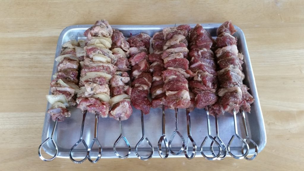 主役は羊肉だ。これはネットでオーストラリア産のラムブロック1㎏を買った。これを適当に切って各種スパイスをまぶし、串に刺せばいい。