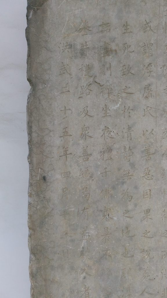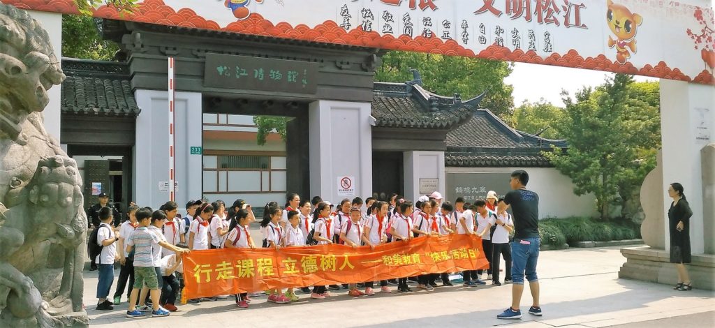★松江博物館―赤く塗られた謎の石碑― 私が訪問した日は、小学生の参観活動日で、館内外は子供たちで大変にぎやかであった。引率している男性教員の格好を見ると、なかなかオシャレで、新世代の教師というイメージである。さて、敷地内には碑林があるが、ある一基の碑は、倒されたのか、なぜか地面に横たわっている。しかも碑面には赤い塗料で塗られた跡がある。傷みも激しく、多くの文字が判読不能である。 一体何があったのか?この碑に対して松江の人々は何らかの不満を抱いているのだろうか?あるいは単純に紅衛兵の仕業か?建立時期を見ると「光緒二十年甲午冬十月」(1894年)で、日清戦争が勃発した年である。参観したその日、松江は猛暑で、無念にも私は半熱中症になってしまった。頭はフラフラで目まいがし、体全体がだるく、わずかだが吐き気も感じた。これは赤い碑のたたりか!?結果、館員に赤い碑の経緯を聞くという発想も浮かばず、碑文内容を読むという気力もなかった。帰国後ネットで少し調べてみたが、結局何の手がかりもつかめなかった。