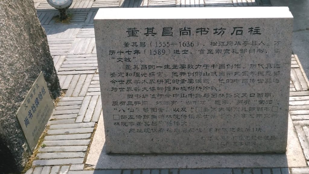 追記:2019年、「程十髪藝術館」(石柱のある場所から徒歩約10分)を参観したとき、董其昌尚書坊を写した古い写真パネルが展示されていたので、それを撮影、転載する。写真の撮影時期は不明。(2019.08)