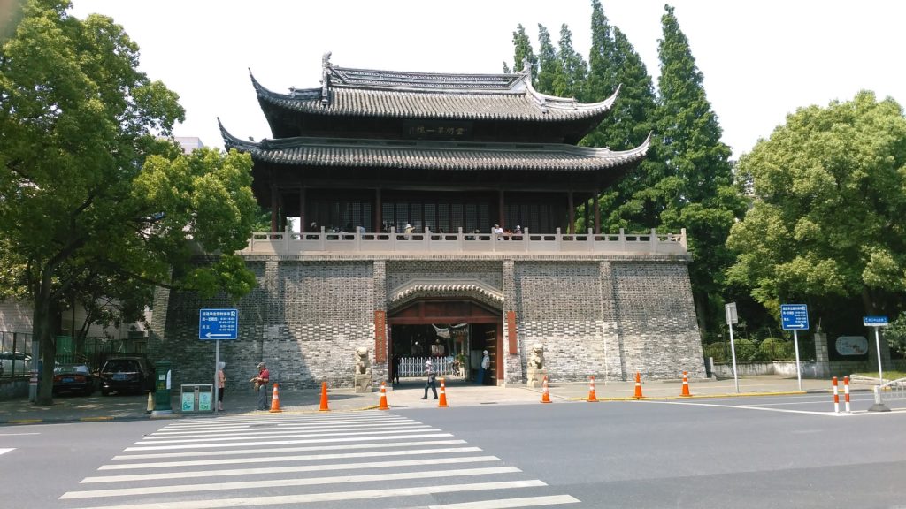★雲間第一楼 「雲間」は松江の別称で、維基百科によると、元初に松江府署を建てた時、その譙楼(見張り台)としてこの楼も建てられたという。その後重建が繰り返され、現在の楼は20世紀に復元されたものだ。今は松江二中の正門となっている。