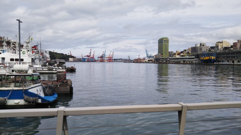 ✿基隆に到着  午前中に九份を市バスで出発、各地のバス停を経由し、ようやく基隆に到着した。下車地点は基隆港の近くだったので、そのまま港を見に行った。地図を見れば分かるが基隆港は細長い形をしていて、一番奥まった部分にある海洋広場からの眺めは、水路が両岸の建物に挟まれたような状態で多少窮屈な感じがする。