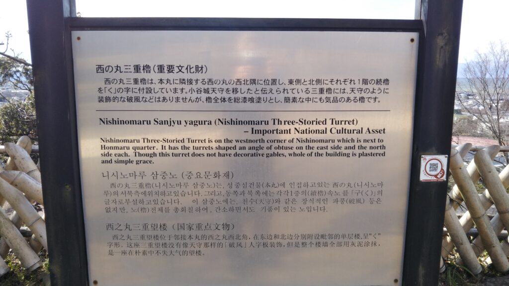 竹生島:琵琶湖国定公園特別保護区、国の名勝および史跡に指定されている。神の棲む島とも言われ、都久夫須麻神社(竹生島神社)、宝厳寺(西国三十三所三十番札所)がある。《天守内説明文より引用》