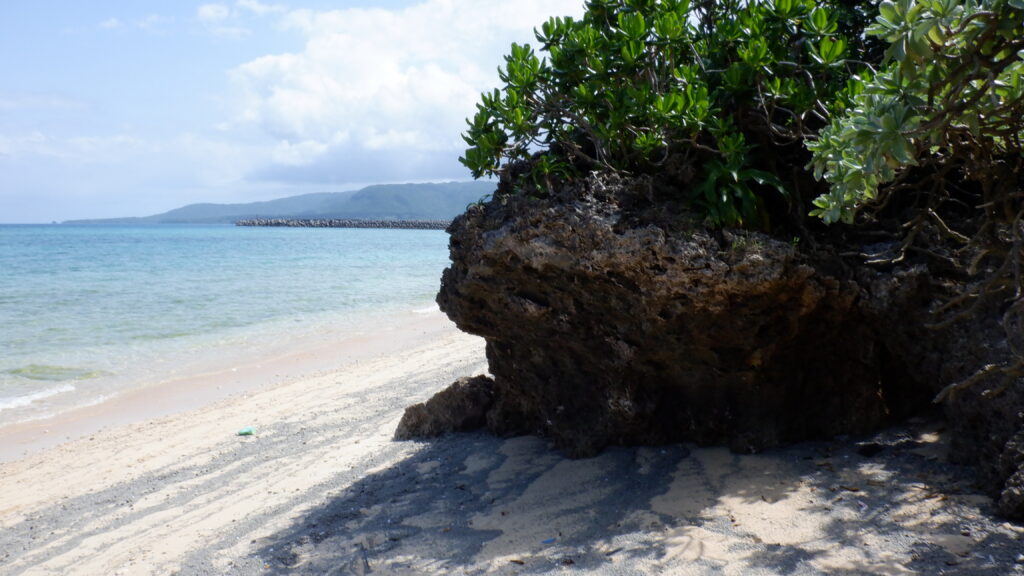 ただ「軽石問題」がここでも発生していた。上原港到着時に大量の軽石がプカプカ浮いているのが見えたが、まるまビーチにも大量の軽石が漂着し、景観的にも残念な状況だ。軽石は漁業や観光業等へ様々な被害を与えているという。しかし考えてみればこれも自然現象である。白い砂浜に灰色の軽石が混在する風景、これも受け入れる必要があるということか・・・