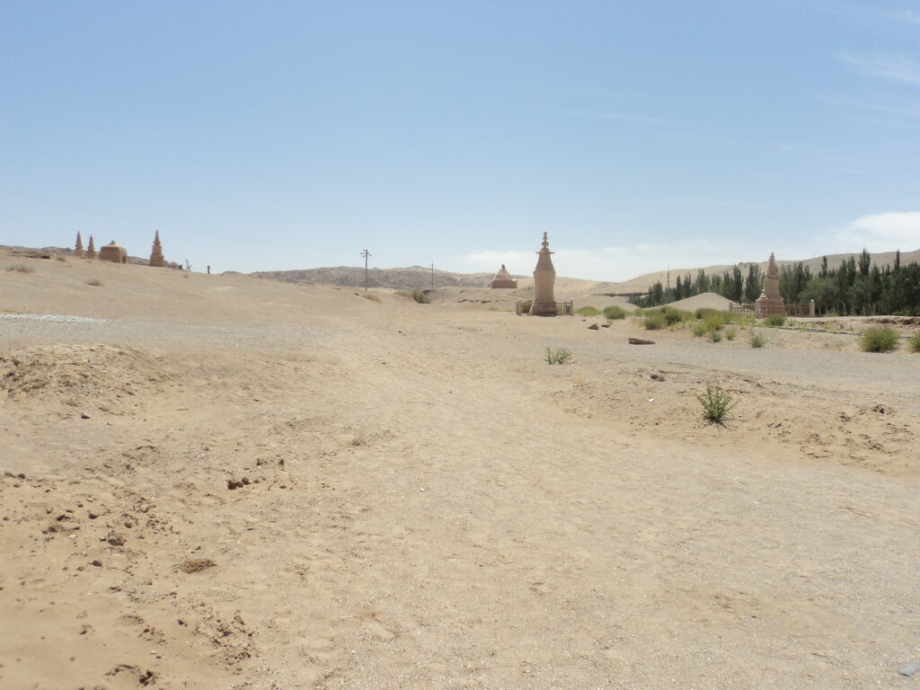 玉門関は現存しているが陽関は既に消滅して存在せず、跡地には石碑が残るだけだ。ただ近くには古い狼煙台が残っていて辺境の悲壮な雰囲気をかき立てている。陽関跡から西方を眺めると荒涼とした原野が延々と広がっている。当時この地に派遣された兵士はどれほど孤独を感じたことだろうか・・・