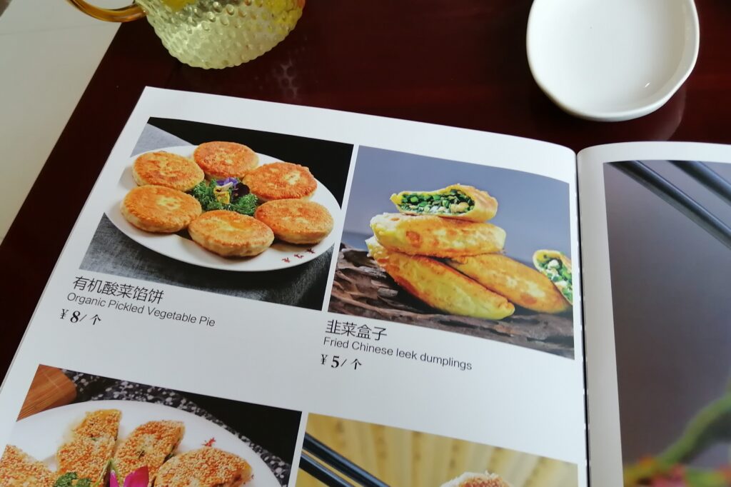 さてメニューを見ていて少し驚いた。それは先日遼寧賓館で念願かない初めて味わうことのできた「韮菜盒子」が、この店のメニューにもあったということだ。つまり韮菜盒子は瀋陽では普通に販売しているポピュラーな食べ物ということなのだろうか。もちろん店が変われば味も多少は異なるであろう。そこで今回も注文することにした。実際前回に比べて餡がさらに柔らかく、衣にかぶりつくと餡が中から流れ出てきた。餡には乾燥小エビも入っていて味も少し違うようであった。他には当店オススメの「焦熘肉段」(豚肉を粒状に切り衣をまぶして揚げ、それをあんかけにしたもの)とシャキシャキしておいしい「清炒芥蘭苗」(芥蘭苗という葉野菜の炒め物)を注文、これらもおいしくいただいた。