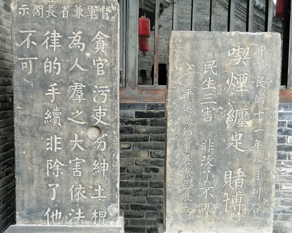 向かって右の一つは、民国11年(1922年)、平遥県知事・呉潔己の建立。