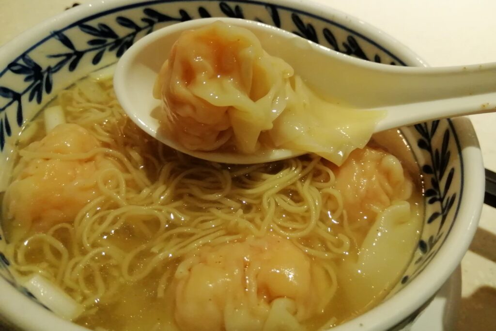 「池記」で昼食  公園を出て近くにある「池記(チーゲイ)尖沙咀店」で食事する。おすすめメニューの「鮮蝦雲吞竹昇麺(海老ワンタン竹昇麺)」を注文。ワンタンはプリプリのエビがたっぷり入っていて食べ応えがある。スープも大変おいしい。「竹昇麺」とは竹で打った細麺で、コシ・弾力が非常に強い。そう言えば35年程前のことだが、イギリス・ロンドンの中華レストランで初めて竹昇麺を食べた時、変な表現だがまるで輪ゴムを食べているかのような食感で、世の中にこんな麺があるのかとビックリした思い出がある。