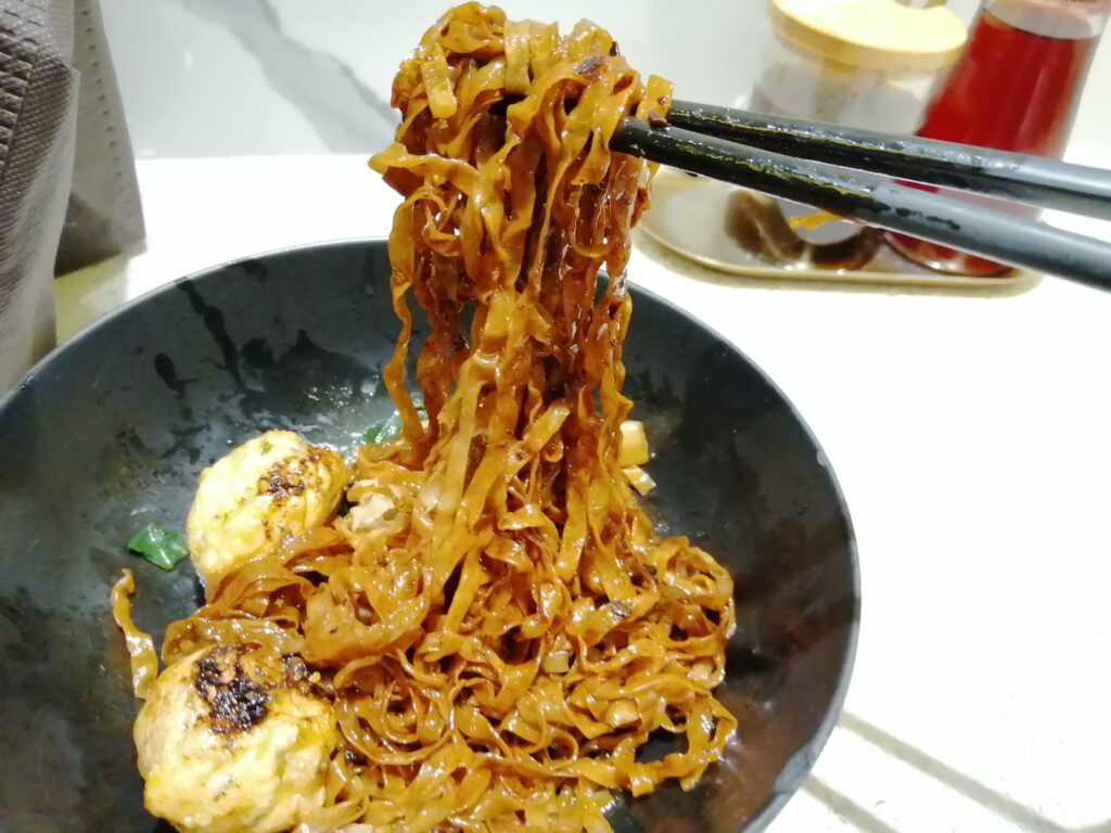 「鶏記(尖沙咀店)」で夕食  ここは宿の近くにある人気の潮州麺料理店「鶏記(ガイゲイ)」。ネットマップを見ると香港で数店舗展開しているようだ。自身は看板メニューの「炸紫菜墨魚丸黒豉油王撈麺(イカすり身団子フライをのせた汁なし麺、スープ付き)」を注文。熱々の団子フライは確かにおいしい。豆鼓油を絡めたコシのある平麺もイイ感じだ。ただ自分の場合は「池記」で食べたような湯麵のほうが好みである。