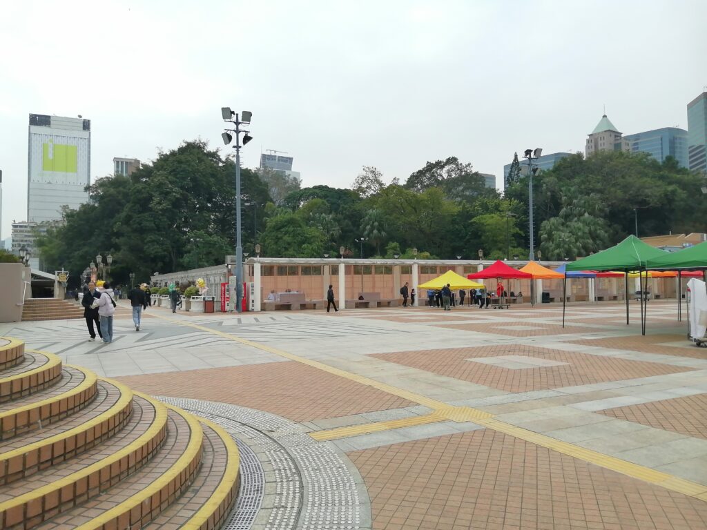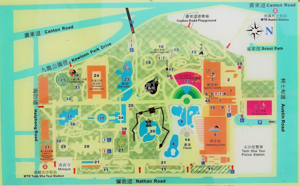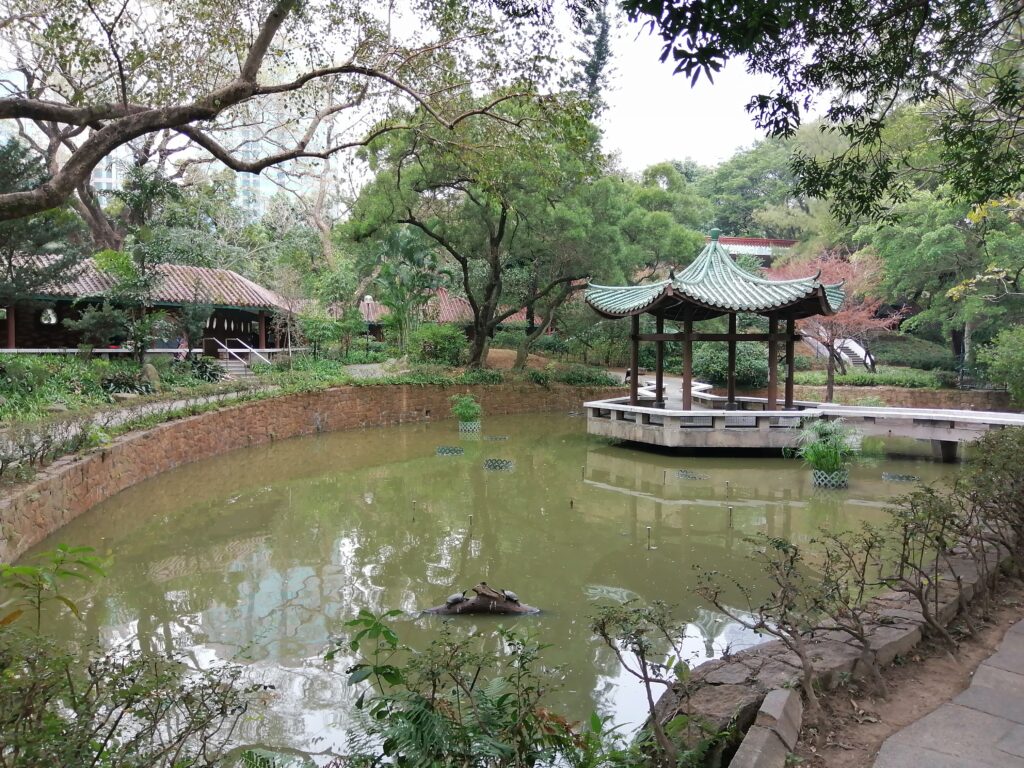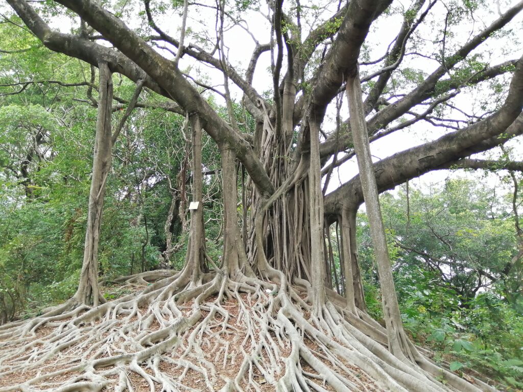 九龍公園(カオルーン・パーク) 天后廟を出て「男人街(廟街)」と言われる集合住宅や商店が密集するゴチャゴチャ・エリアを通り過ぎると、急に視界が広がり空が大きく見える。そこは「九龍公園」、敷地はかなり広大だ。園内を少し散策し適当なベンチで休憩する。大きな榕樹(ガジュマル)に目が行った。気根をいくつも垂らし幹のように太くなっているのが印象的である。そういえば街路樹としても榕樹がよく植えられているが、それを見ると香港は南国なんだと再認識する。