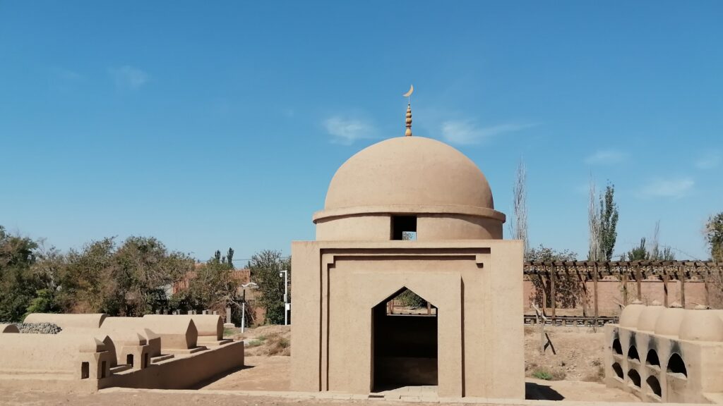 墓地群 塔の周辺には大小様々な形の墓が多数存在している。普段はイスラム教の墓地を見る機会は滅多にないので今回は興味深く拝見した。かつて上海の松江モスクで元代ダルガチの墓を見たが、確かにそれに似た形の墓石がここでも見られた(参照:2019松江旧市街巡り❶松江清真寺)。