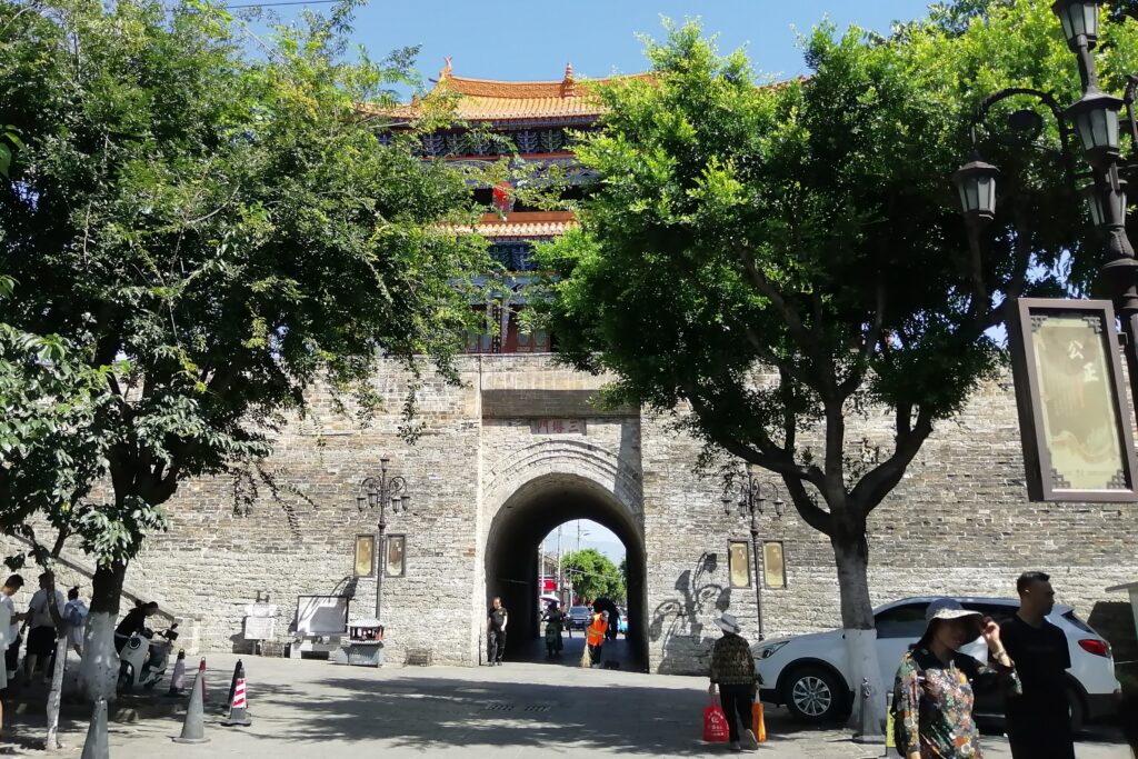 【24日目】8月12日。朝起きると青い空が広がっていたので気分も良い。この日は大理観光の目玉「崇聖寺三塔」を観光する。旅游区の入口まではホテルからは徒歩約30分。途中、古城の雰囲気に合わせた映画館、中国建築のキリスト教会、そして立派な北城門(三塔門)等を見る。城門は明代の建築で、登ることもできる。周囲に大きなビル等がないので眺望は良い。