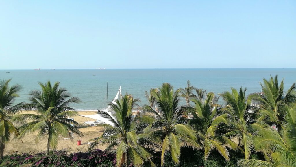 食後はベランダで酒を飲みながら美しいサンセットを鑑賞。この一日は海岸でのんびり過ごすことができ、とても癒された。翌日は海南島の最終訪問地・三亜へ移動する。どのような出会いが待っているのだろうか。