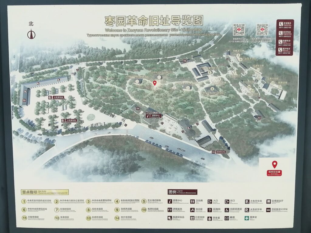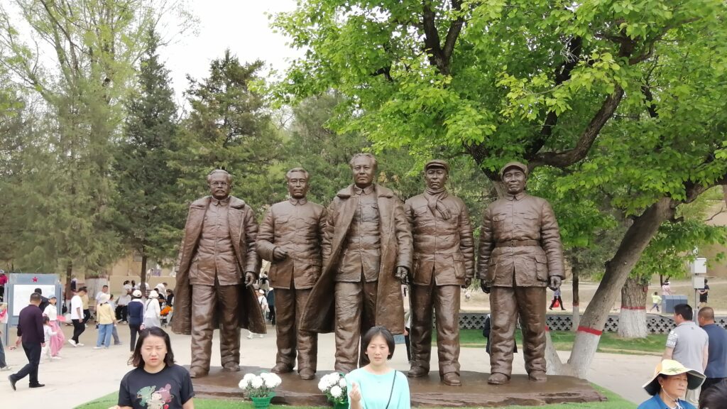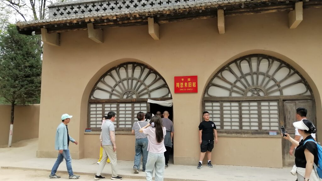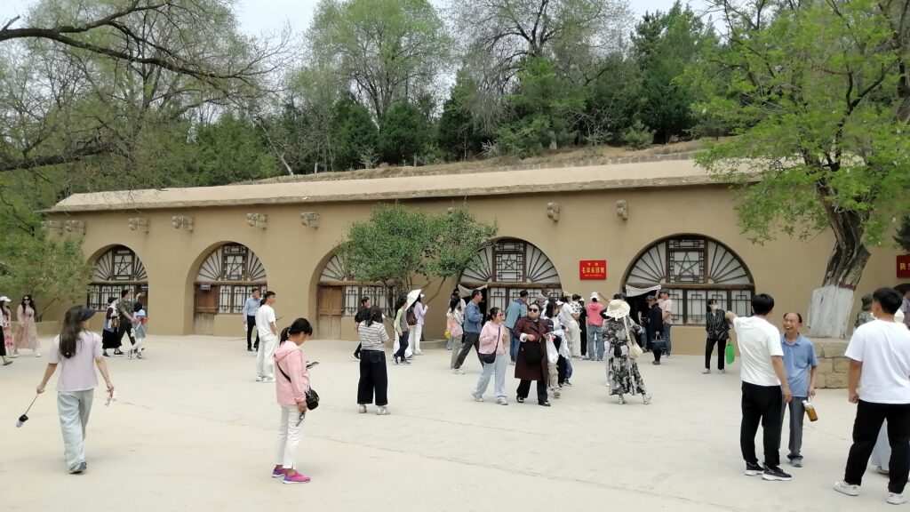 棗園  市街地にあるホテル前から北西方向に市バスで約30分で棗園に到着。入場は無料。広い敷地内には緑が広がり、一見普通の公園のようにも見える。色々な建物があるが、人気は当時の中国共産党最高指導者たちの旧居。多くの参観者たちが建物前で記念撮影をしている。概説は百度百科から引用する。