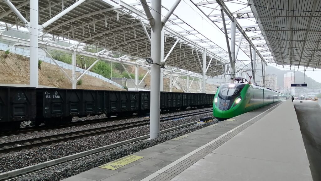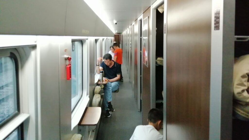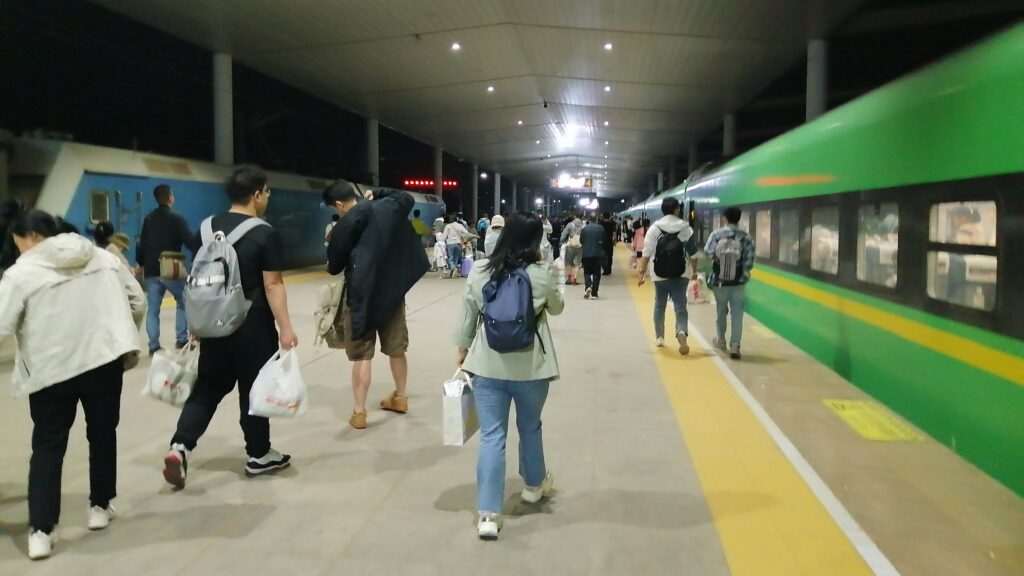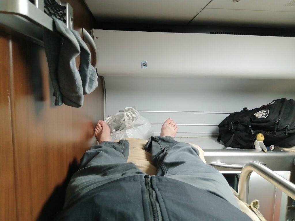 延安駅出発  列車は午後5時33分発、約3時間かけて楡林に向かう。普通席でもよかったが予約時点で完売、仕方なく寝台を利用。まぁ横になると体もかなり休まる。料金は少し高いが、疲れている時はそれもいいかと思う。