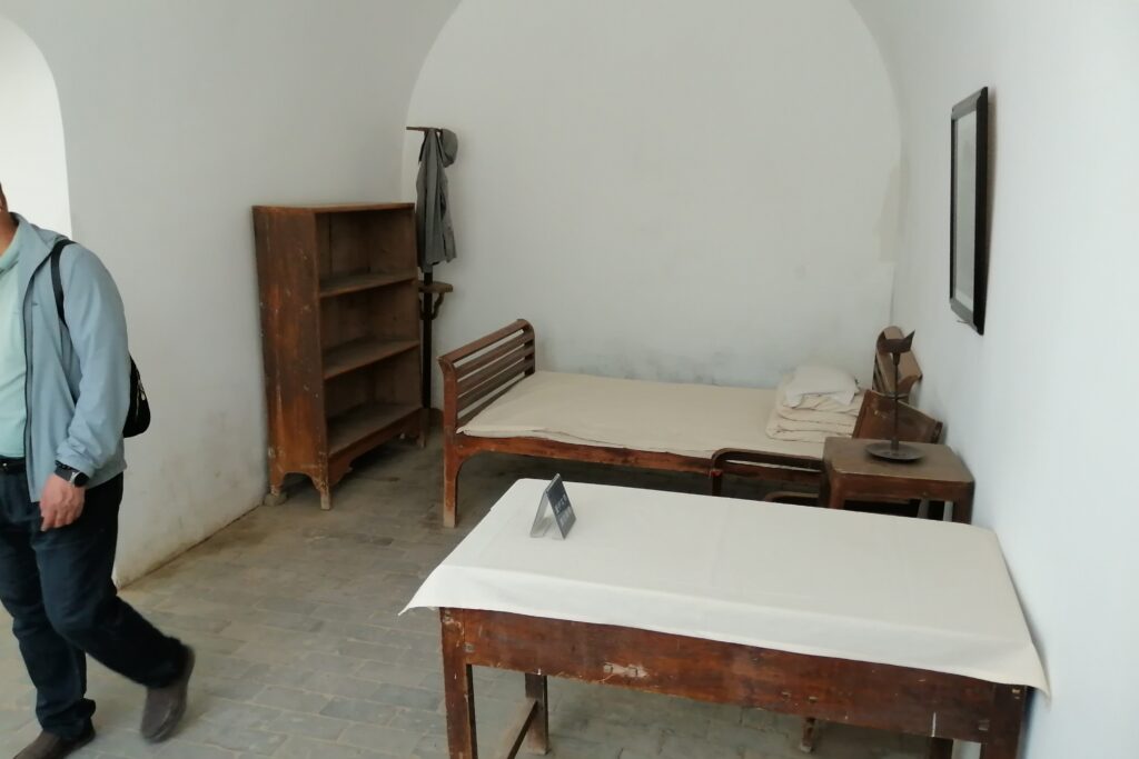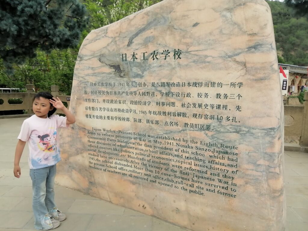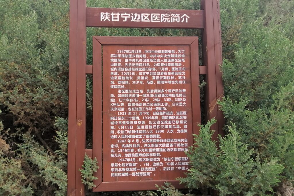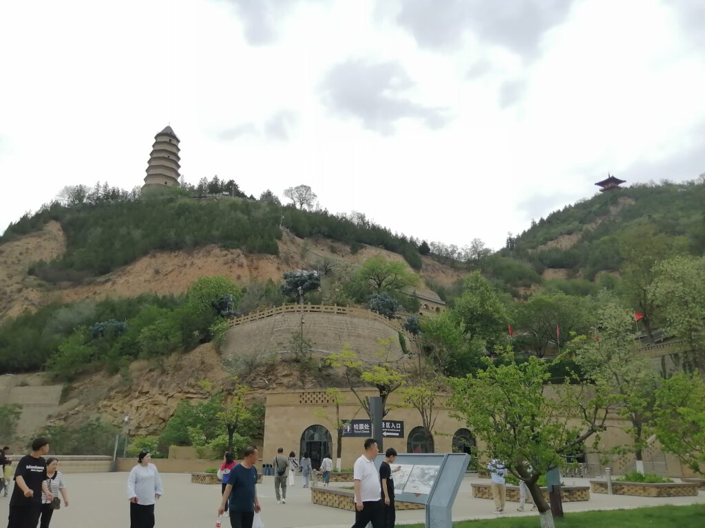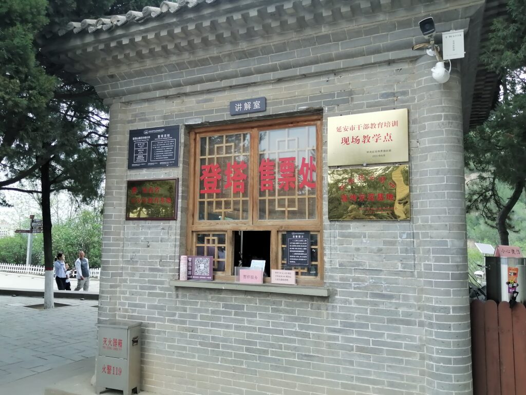 宝塔山  棗園から市バスで宝塔山付近まで移動、歩いて観光センターに向かう。入場料60元を払い風景区内に入る。区内は広く見所が散在しているが、私の場合は時間の制約もあり「宝塔(嶺山寺塔)」だけを観光して帰る予定。塔に向かって歩を進めると、途中「日本工農学校跡」「陝甘寧辺区医院跡」がある。この地で「日本」という文字が目に入ると少しドキッとする。どちらもサラッと見学し宝塔に向かう。