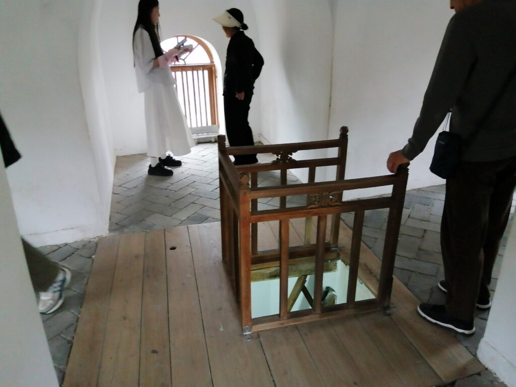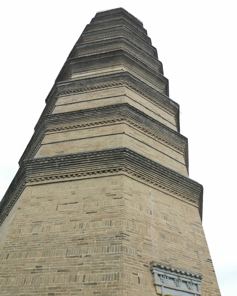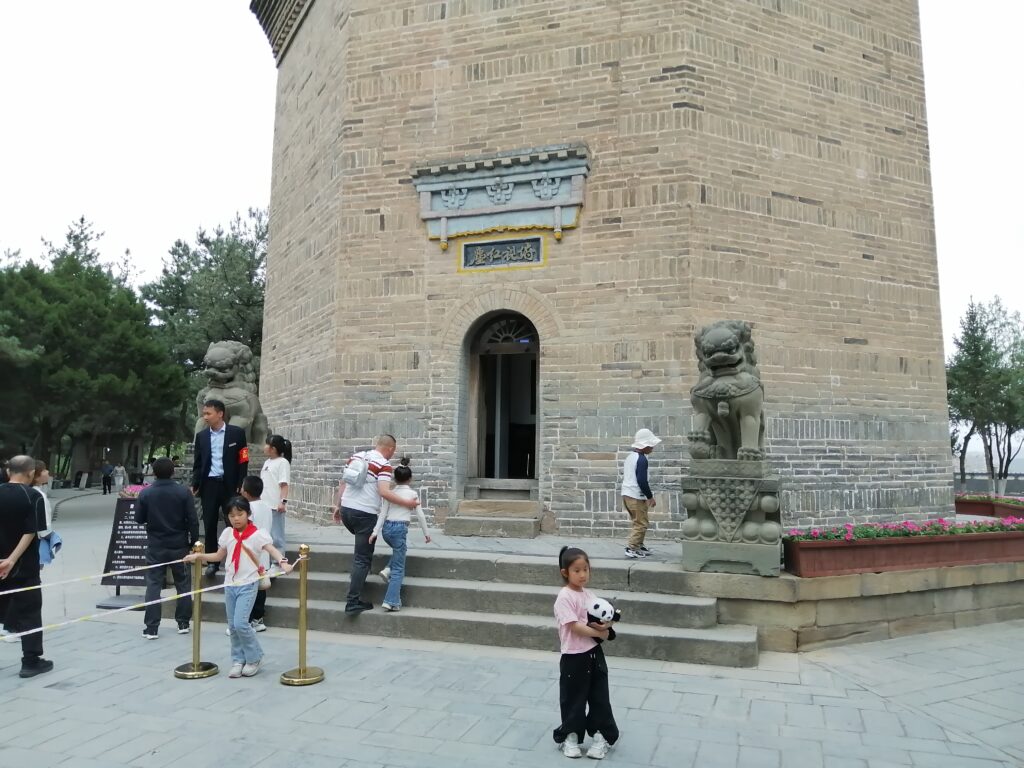 さて、到着当時は何かのトラブルで塔内見学が中止されていたが、周囲を散策しているうちに見学可能になった。さっそく入塔料10元を払い、最上階に向かって登り始める。多少息は切れるが、ここ数日はよく歩いて鍛えているので間もなく最上階に到着。上からの眺めは良い。自分が利用したホテルも見える。少し景色を眺めたら早々と下りる。それは階段がかなり狭く、観光客が殺到したら危険だと感じたからだ。かなり前のことだが、開封の鉄塔でも雑踏事故を恐れて塔に登るのを諦めた経験がある。やはり安全第一・・・。