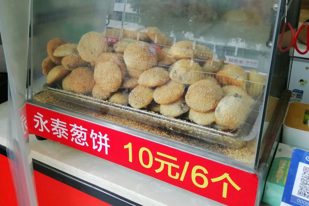 永泰葱餅 バスに乗る前、ご当地名物スナック「永泰葱餅」を購入。葱餅販売店は市内各所にある。永泰とは福建省にある地名。昔ながらの木炭窯で焼いている店もあるようだが、私が行った店は電気窯を使っているとのこと。残念だ・・・。私は炭火で焼いた香ばしさを非常に好む。そのため焼肉するにもコダワリがある。➔参考:感動する焼肉」のすすめ(上)網焼き編