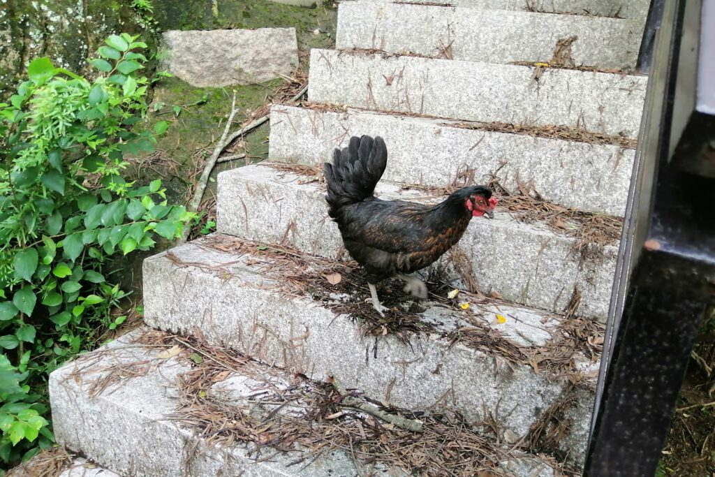 墓参りを終え山を下る。ニワトリが山道近くを元気よく飛び回っている。その後は古鎮内の他のエリアを散策したが、特に記載するような場所は見当たらなかった。それではこれで閔安観光を終了。福州市街に戻るためバス停へ向かう。