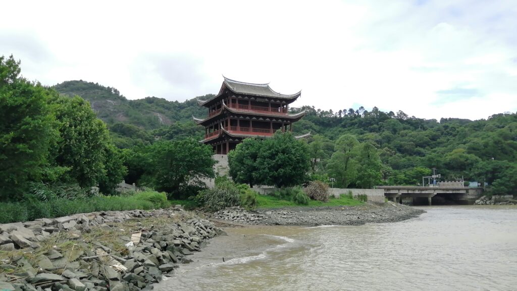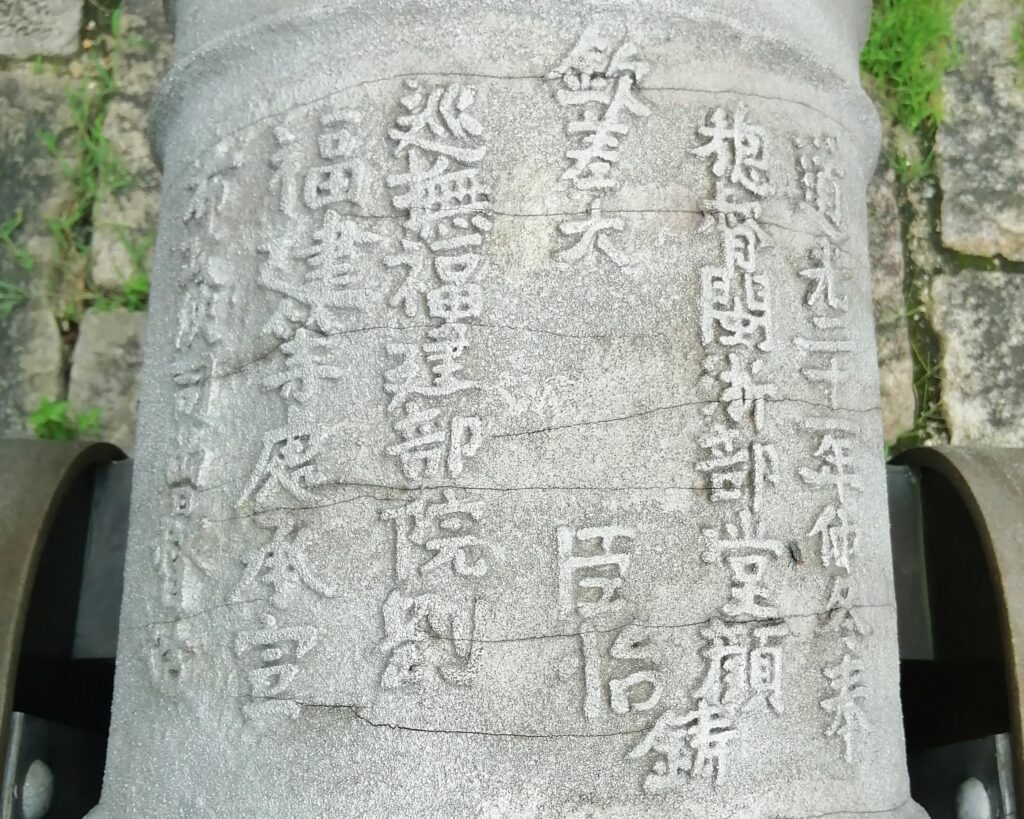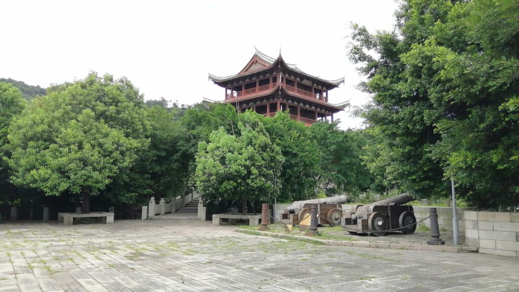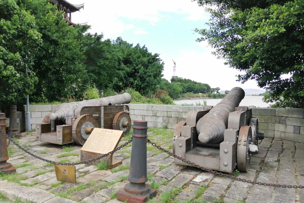 到着後は先ず、閔江の川岸エリアへ向かう。そこでは閔安古渡口や閔安楼をサッと見学。楼の手前には清代の大砲2門が飾られている。現地の説明によると1884年の清仏・馬江海戦で使われたという。