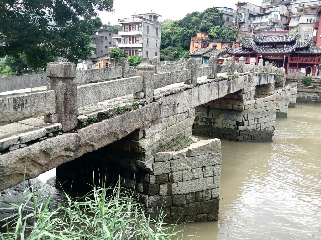 閔安観光の目玉・メインスポットに到着。この石橋は唐代901年創建、つまり1100年の歴史を有す。福建省に現存する最古の石橋。これまで中国各地で古い石橋を色々と見てきたが、この迥龍橋はフォルムもサビれ具合もかなり魅力的だ。ちなみに他地域で印象に残った石橋としては、邯鄲永年城外の弘済橋(隋)、麗江束河古鎮の青龍橋(明)、朱家角の放生橋(明)、上海松江の大倉橋(明)、上海松江方塔園の望仙橋(南宋)、北京の盧溝橋(金)がすぐに思い浮かぶ。