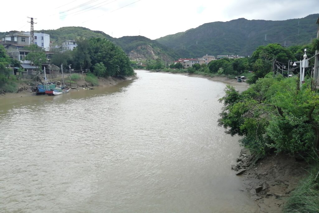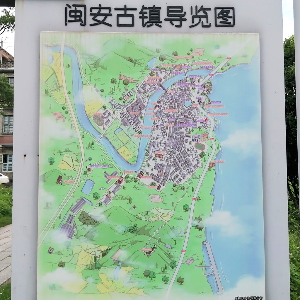 閔安古鎮 ある地点からバスは閔江沿いの道路を走りはじめる。そして閔安に近づくと進行方向右手に川が大きく姿を現す。するとまもなくバス亭「閔安」に到着。閔安鎮の説明は百度百科より引用。