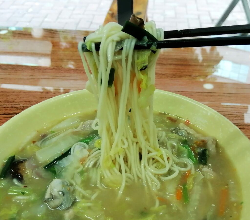 さて実際に食べてみると、日本のチャンポン麺に似ていると感じた。ただこちらの麺は細麺。夏の福州で食べる熱々麺、当然汗が噴き出てくるが、店内はクーラーが効いているので安心。ごちそうさまでした!😊~