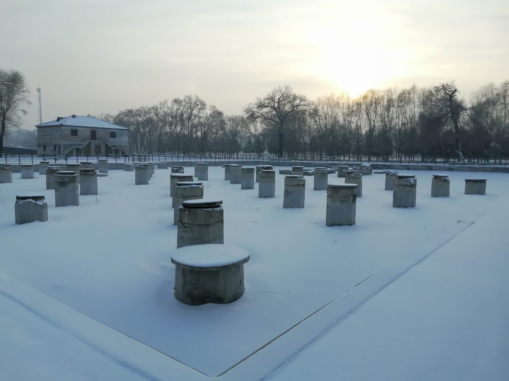 陳列館を見終えると次は野外遺跡の見学である。広大な敷地には雪が積もり、雪を踏みしめながらゆっくり歩いて行く。心だけでなく足取りも重く感じる。私自身の考えだが、この地は雪の積もった氷点下の厳しい冬に訪れるのがいいだろう。それは僅かであっても当時の人たちの苦しみ・悲しみ・絶望を体で感じ取ることができるような気がするからである。