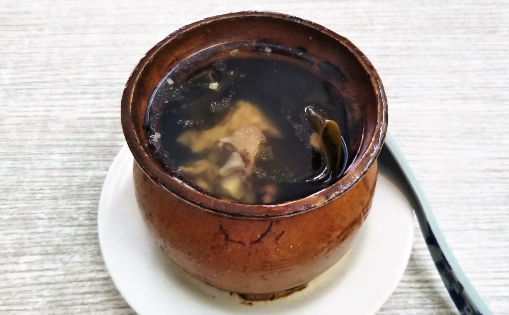 南昌瓦罐湯 次に紹介する南昌の名物料理は「南昌瓦罐湯」。下の引用文のとおり「南昌煨湯」とも呼ばれ、様々な具材を陶製の容器に入れ、それを大甕の中でとろ火で長時間煮込んだスープである。私が食べたのは 「海帯排骨湯」で、具材は海帯(昆布)と排骨(スペアリブ)だ。具材の旨味がしっかりとスープの溶け込み、一匙一匙を口に運ぶと、そのおいしさで幸福感さえ感じる。これは比較的あっさりとしていて日本国信州人の私が毎日食べても飽きの来ない味である。