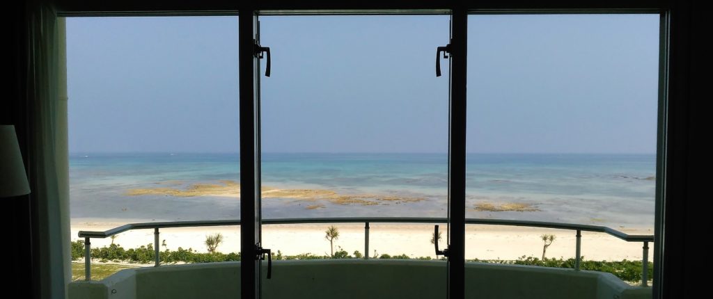 🍀イーフビーチ(日本の渚百選入選) 「久米島イーフビーチホテル」に宿泊した。ホテルの前には白い砂浜が遠くまでひろがり、とても魅力的だ。