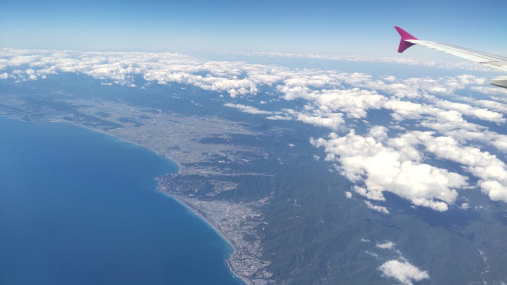 機内から見る地上の風景も新鮮である。石垣空港から関西空港までに撮影した画像をいくつか掲載するが、まぁ軽く見てもらいたい。